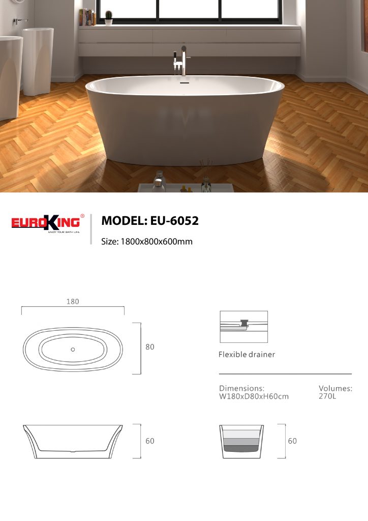 Chúng tôi còn cung cấp lavabo (bồn rửa tay, bồn rửa mặt) với phong cách đồng bộ với bồn tắm EU-6052. Mang đến cho không gian phòng tắm của bạn vẻ đẹp trọn vẹn, hoàn hảo nhất.