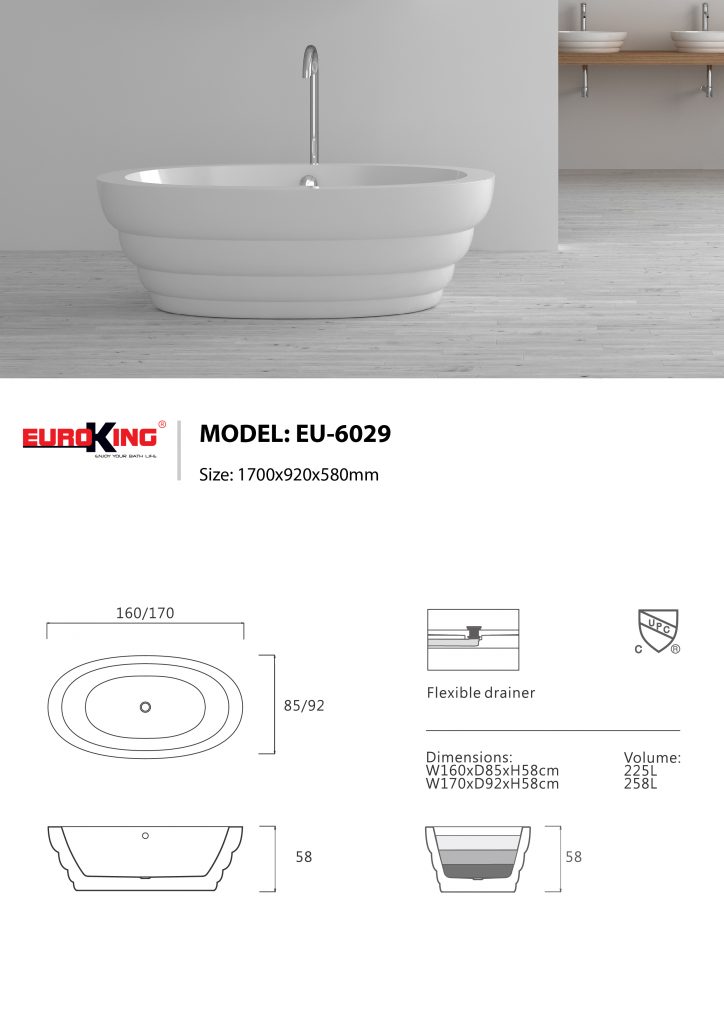 Được gia công từ chất liệu Acrylic cao cấp, bồn tắm EU-6029 sở hữu đủ đầy những đặc tính ưu việt, được đánh giá cao về khả năng chịu lực và chịu nhiệt của mình. Nhiệt độ tan chảy của Acrylic cao hơn nhiều so với nhiệt độ sôi của nước. Acrylic cũng là vật liệu không độc hại với con người nên rất an toàn khi sử dụng.