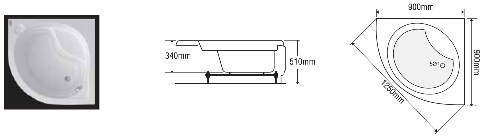 Size: 900mm x 900mm x 340mm
