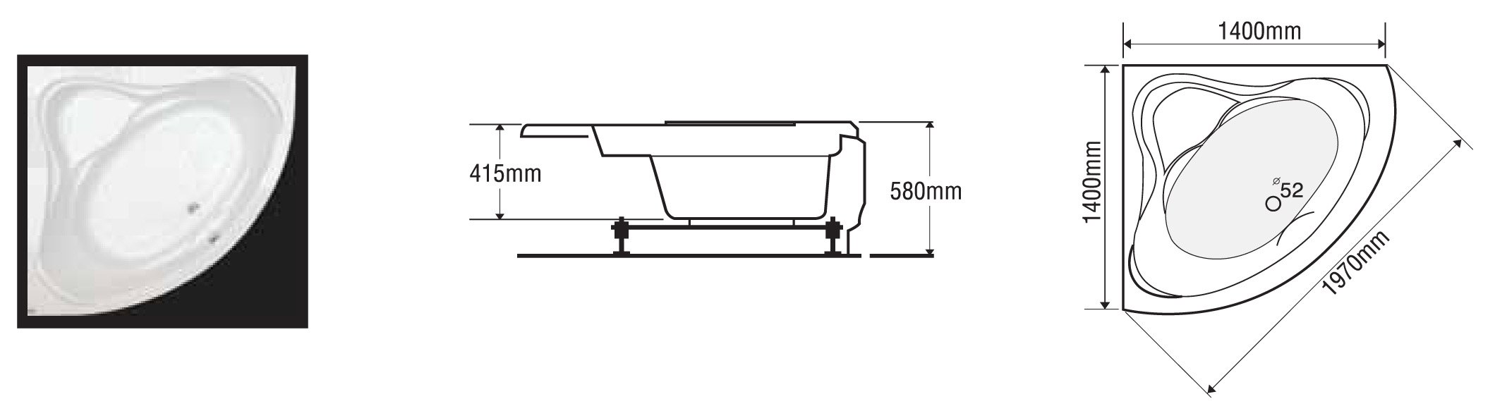 Được sản xuất tại Việt Nam theo tiêu chuẩn Châu Âu,bồn tắm góc massage Euroca EU3-1400 có thiết kế thích hợp với các phòng tắm có không gian nhỏ,hoặc người sử dụng muốn tận dụng góc phòng tắm để tiết kiệm diện tích không gian được thoáng và rộng hơn.Sản phẩm này tuy nhỏ gọn nhưng không làm mất đi sự tiện nghi của một chiếc bồn tắm có được.