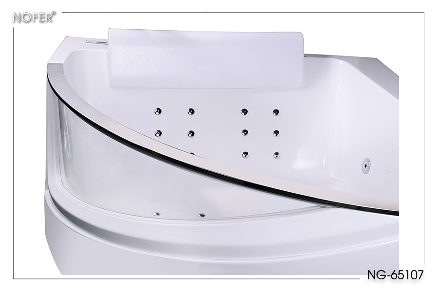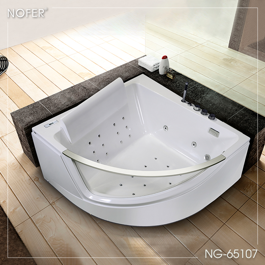 Kích thước là 1500*1500*630 mm, khá thoải mái khi sử dụng cho hai người. Chất liệu acrylic cao cấp mang đến vẻ sáng bóng bội phần cho chiếc bồn tắm massage NG-65107 này, dễ lau chùi vệ sinh cũng như chịu được nhiệt độ cao rất tốt.