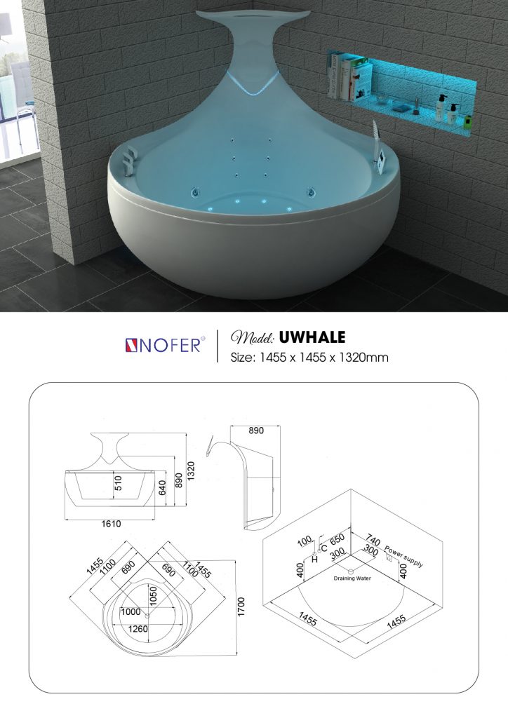 Ẩn mình trong dáng hình chú cá voi, UWHALE được chăm chút đến từng đường nét thiết kế nhỏ để mang đến những trải nghiệm thực tế trọn vẹn nhất cho khách hàng. Với kích thước 1455x1455x1320mm, chiếc bồn massage không chiếm quá nhiều diện tích phòng và thích hợp cho 1 người sử dụng thoải mái.