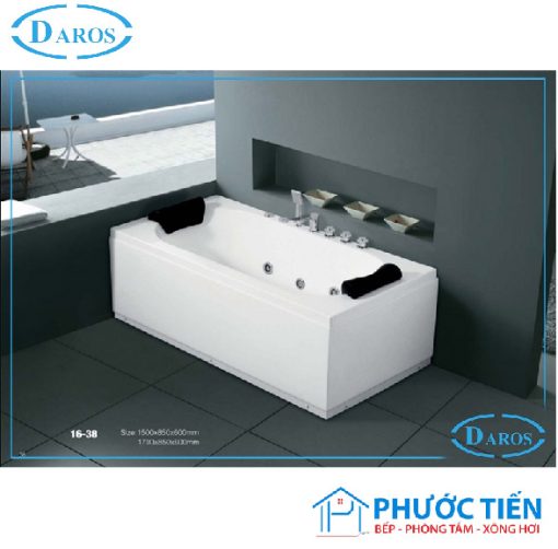 Bồn tắm massage daros sản phẩm mang thương hiệu nổi tiếng của Hàn Quốc. Bồn tắm massage daros có kiểu dáng đẹp và đa dạng như bồn tắm góc, bồn tắm nằm, bồn tắm đứng …… Một trong những mẫu bồn tắm được khách hàng quan tâm nhiều hiện nay quý khách có thể tham khảo model bồn tắm massage daros DR16-38.