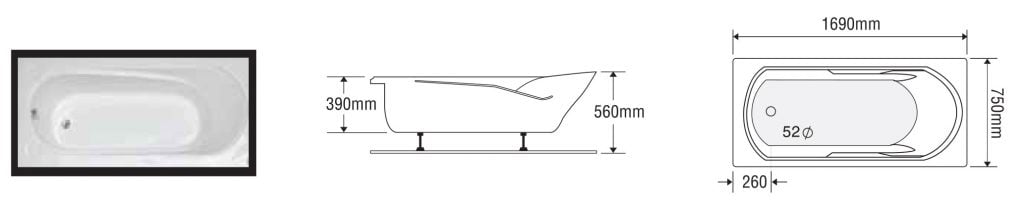 Size: 1700mm x 750mm x 390mm