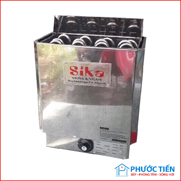 Máy xông hơi khô Sika đang là một trong những dòng được nhiều khách hàng ưa chuộng trên thị trường hiện nay bởi không những máy có độ bền cao, an toàn mà giá thành của máy lại rất phù hợp cùng nhu cầu của đại đa số khách hàng tại Việt Nam. Máy xông hơi khô Sika cao cấp được cấu tạo bởi chất liệu vỏ bằng thép phủ lớp vỏ ngoài bằng lớp kẽm màu xám có tác dụng giúp bảo vệ các bộ phận bên trong của máy, hạn chế sự tác động của các tác nhân bên ngoài, chống han rỉ, chồng mòn, an toàn với người sử dụng ngay cả trong môi trường ẩm ướt như phòng tắm nên máy có độ bền cao. Cùng với đó là bộ phận bên trong thân máy là hệ thống sợi đốt (còn gọi là maiso) có tác dụng tạo nhiệt khô làm nóng đá sauna khi đá nóng sẽ tỏa nhiệt khắp phòng để giúp người xông làm nóng cơ thể, đào thải độc tố thông qua sự bài tiết của tuyến mồ hôi.