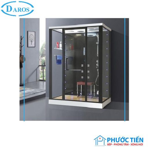 Phòng xông hơi Daros HT-7002 có thiết kế khung chữ nhật mang đến không gian phòng tắm mở sang trọng và hiện đại. Phần đế bằng chất liệu Acrylic với độ cứng cao, chịu lực, chịu nhiệt tốt, chống ố, chống mốc, dễ lau chùi vệ sinh. Phần khung được làm bằng chất liệu hợp kim nhôm siêu bền, bao quanh là hệ thống kính cường lực vững chắc.