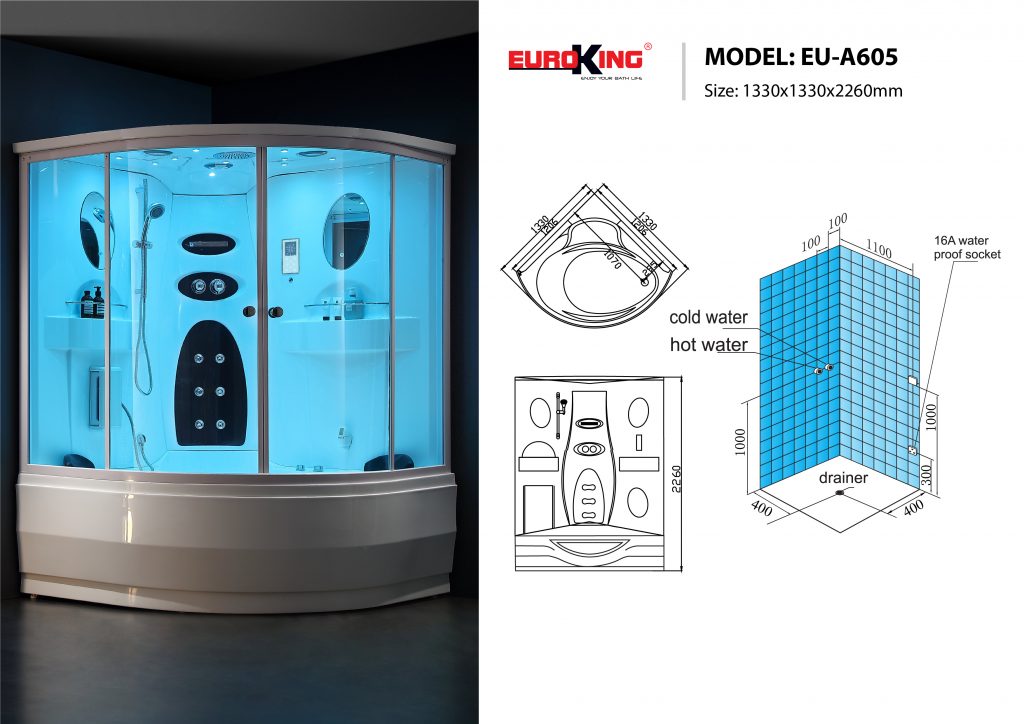 Phòng xông hơi EU-A605 trở thành một thiết bị phòng tắm đa năng. Nơi bạn vừa được xông hơi, tắm và ngâm mình thư giãn.