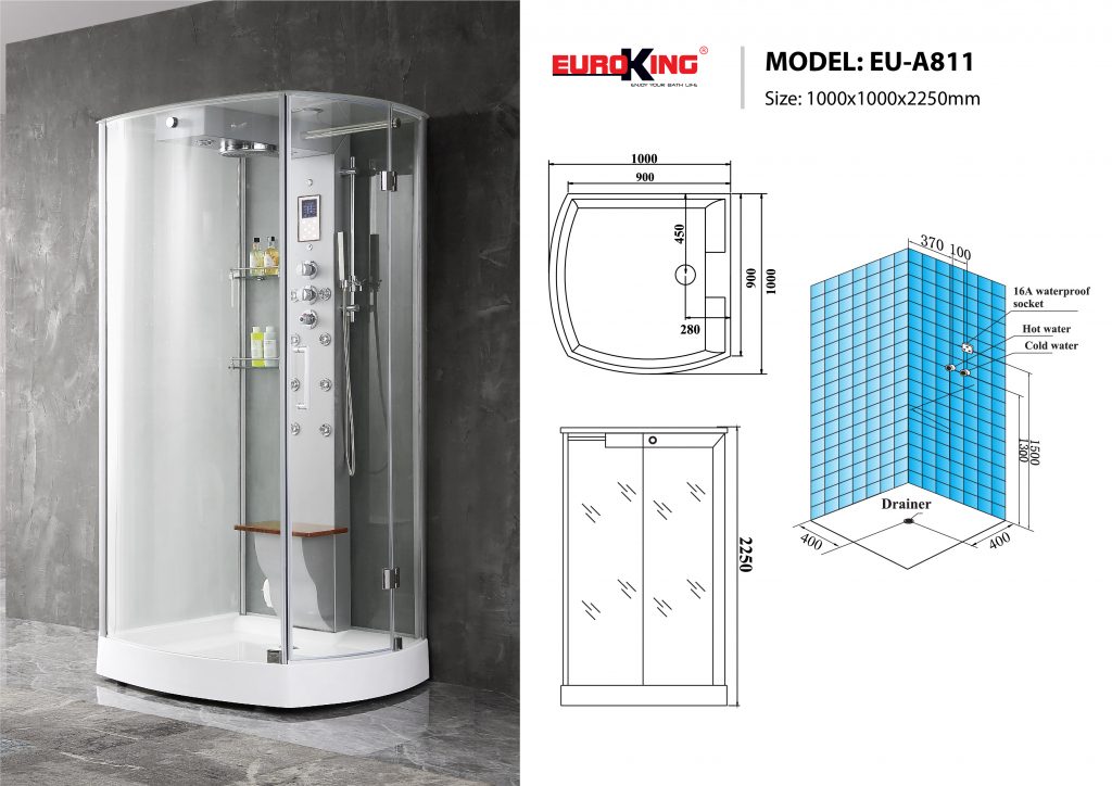 Phòng xông hơi EU-A811 đa năng, nơi bạn được vừa xông hơi, tắm rửa và massage thư giãn.