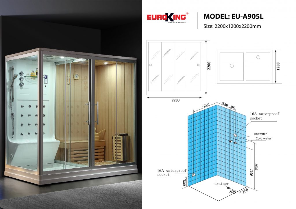 Phòng xông hơi EU-A905L/905R là sự hết hợp 2 lợi ích của cả phòng xông hơi khô và ướt trong một sản phẩm. Mang đến cho bạn những điều tốt nhất và tiện lợi nhất.